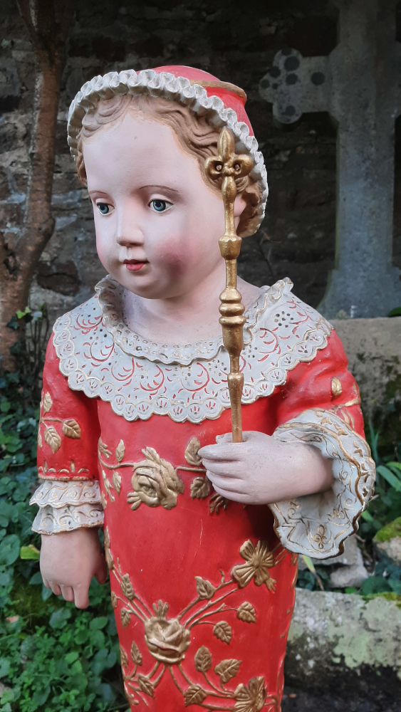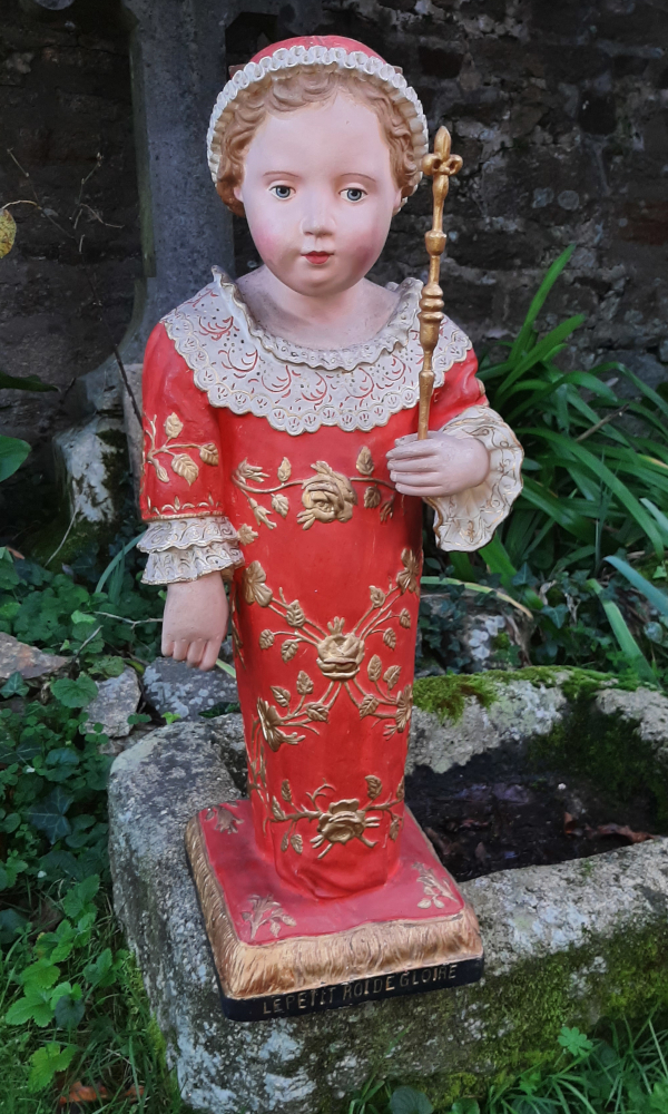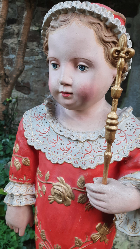| Enfant Jésus de Beaune 65 cm, statue ancienne en plâtre, St sulpicien pour un oratoire ou coin de prière pour la famille., Chapelle ou église.